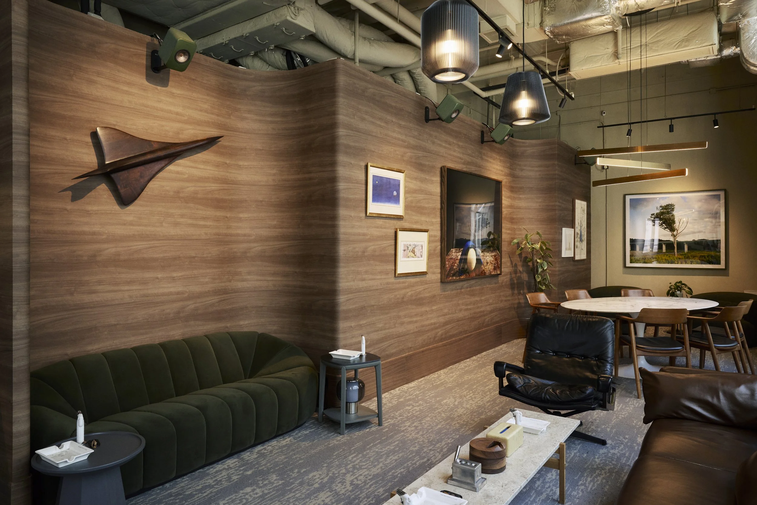 The Study is The Armoury’s collaboration with Davidoff of Geneva and features a cigar shop and a tasting lounge with a notable difference. Instead of purely armchairs, the Study also has plentiful desks and chairs for working while enjoying a cigar.